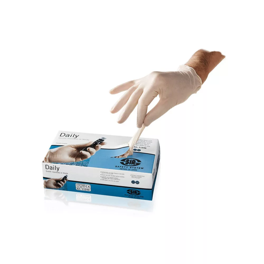 Sir Safety System Daily, vinyl egyszerhasználatos kesztyű - 100db/doboz fehér 08/M